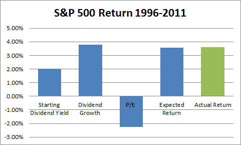 To show how this relationship holds up, consider the return components of the S&P 500 between 1996 and 2011: